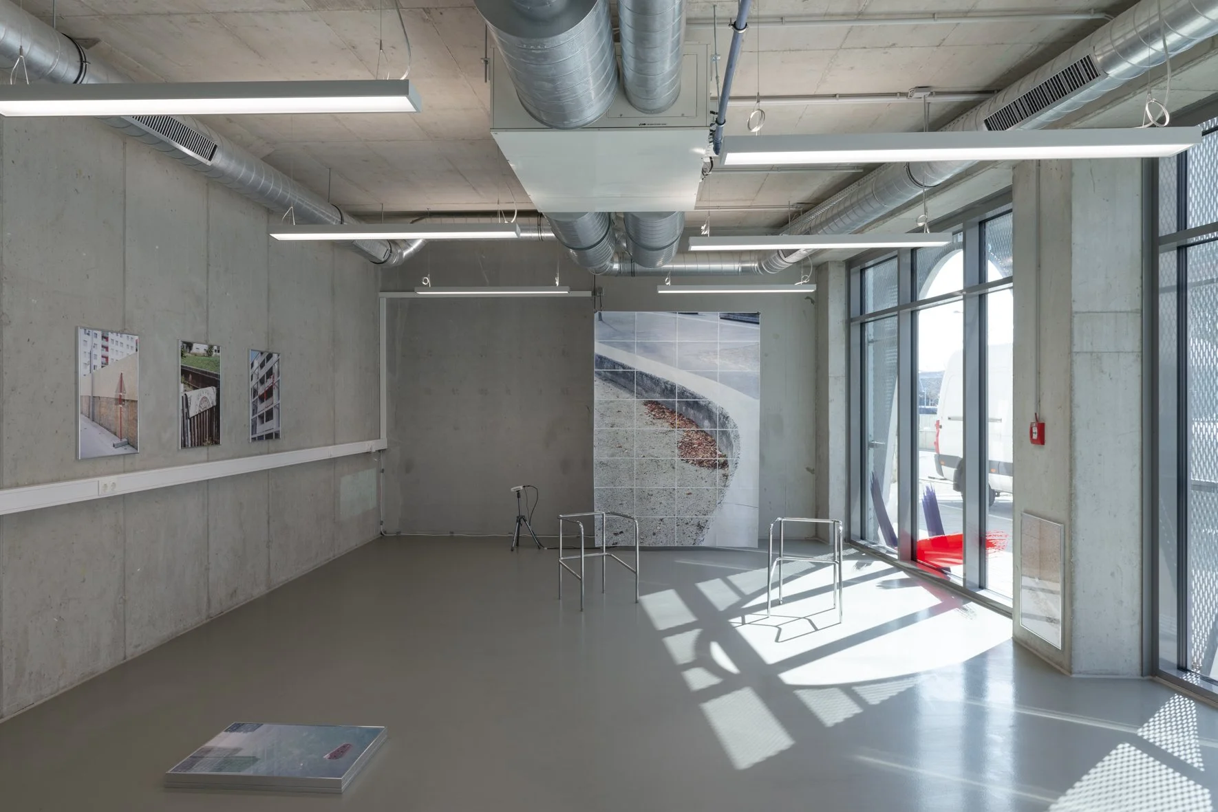 The French-born artist Aurianne Chevandier introduces with Nur zur äußerlichen Anwendung her first solo-exhibition in Austria. Through an intensive process, the artist has dealt with the urban spatial environment of the Contemporary Matters Studio — the public space of Seestadt. Educated as both a photographer and historian, Aurianne Chevandier researched the still young historicity of the site.